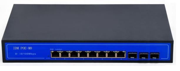 IDM OSW-10GE optical Ethernet Switch can support two gigabit copper/SFP (mini GBIC) terminal interfaces which used for the flexible connection of gigabit copper or fiber. According to the different transmission distance, users can choose the 1000BASE-LX, 1000BASE-SX, 1000BASE-T an other interface type and support 8*10/100Mbps optical interface. The switch supports VLAV, port mirroring, port aggregation and QoS functions, can be easily configured through the WEB interface.